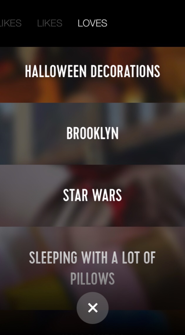 The app allows users to swipe in four different directions to select whether they love, hate, like, or dislike a person, activity or concept.