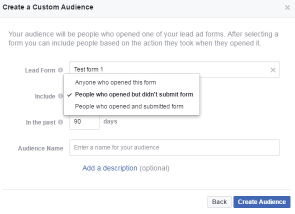 Always exclude existing leads so you’re not wasting impressions and ad dollars. By continuously retargeting the same users, you can stimulate negative feedback, which will deflate your relevance score and hurt your CPMs (cost per thousand impressions).