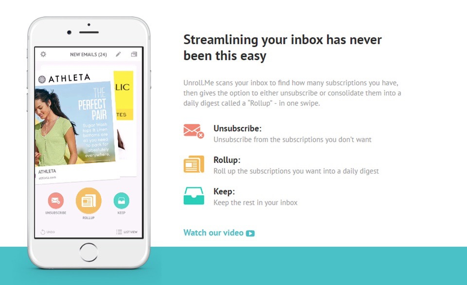 Unroll.me is an app focused on decluttering, organizing and categorizing. It lists all the subscriptions for you so you can easily unsubscribe from the undesired ones. It also has much more cool features like designing your own Rollup with your favorite subscriptions. Available for the Web and iOS only.