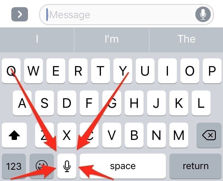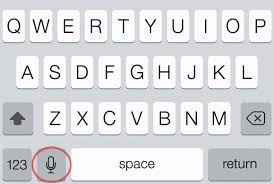 The button to dictate text to speech is prominently displayed on the default iOS keyboard next to the spacebar.