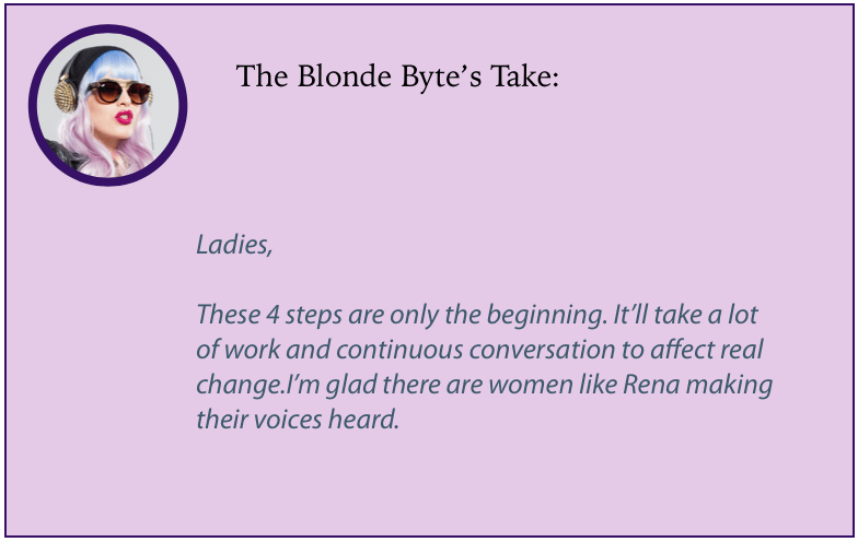 A recent Reuters study also stated that 30% of tech executives had no women in leadership positions. Without women role models and sponsors, the drop-out rates from entry and middle layers will not improve.