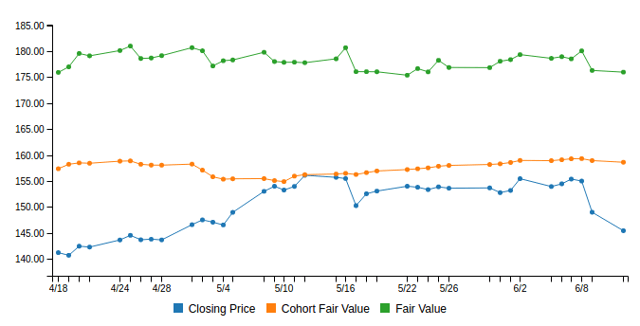- We consult our relative value model to see what may be considered fair value for Apple in today’s market.
