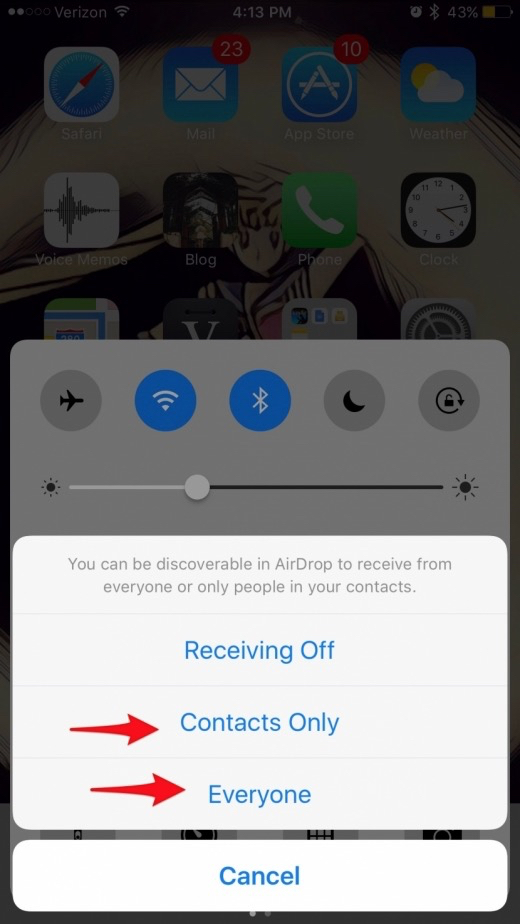 • If you’re okay with receiving Airdrops from anyone nearby, tap Everyone.