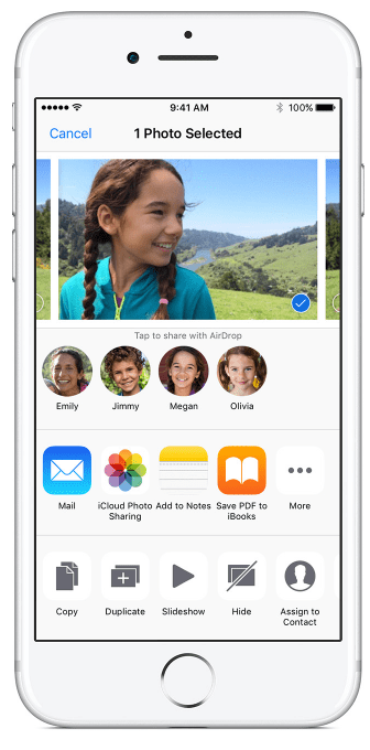 This process will work regardless of what you’re sharing. Once you’ve tapped the Share icon, the other steps are the same. For example, in iCloud Drive, you can tap on a document, then tap the Share icon and follow the steps. For this example, we’ll show how to Airdrop photos from an iPhone to Mac. You could also Airdrop from iPhone to iPhone, or to iPad, whether yours or someone elses that’s nearby.