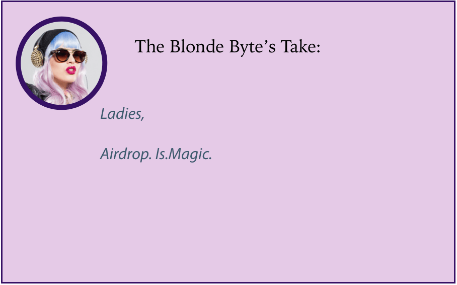 If you have an iPhone 5 or later, an iPad 4 or iPad Mini or later, an iPod Touch 5, or a Mac released in 2010 and beyond, you should be able to use Airdrop with no problems. Your Mac must be running at least OS X Lion. And if your iPhone is running anything older than iOS 9, you’re simply doing it wrong (update your phones!).