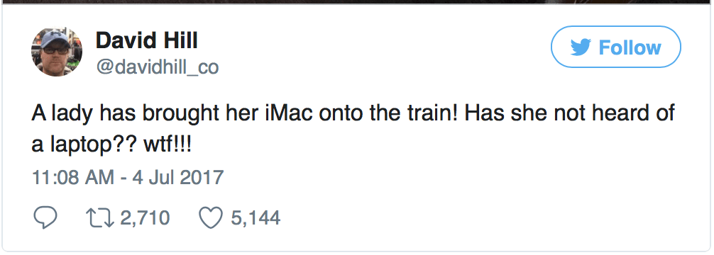 The man who captured the mystery woman in action is David Hill, a humble tech advisor from Texas. “I had to look twice, I was shocked to see such a large computer on the small table,” Hill said in an interview with the Telegraph. “I am still puzzled why someone would carry a desktop computer around, when a laptop would give her the same options, with more portability.”