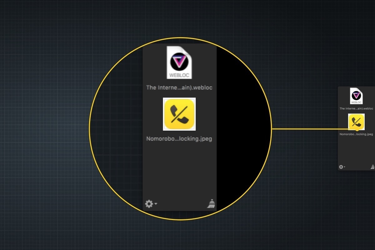 Multiple items dragged onto Yoink become a separate stack of files. Instead of a preview button, a split icon appears next to a stack, which unpacks the stack into separate items when clicked. Yoink also supports a customizable Force Touch gesture that can be set to select all the files in Yoink, reveal a file in Finder, pin and unpin the file in Yoink, or trigger the preview/stack-split button.
