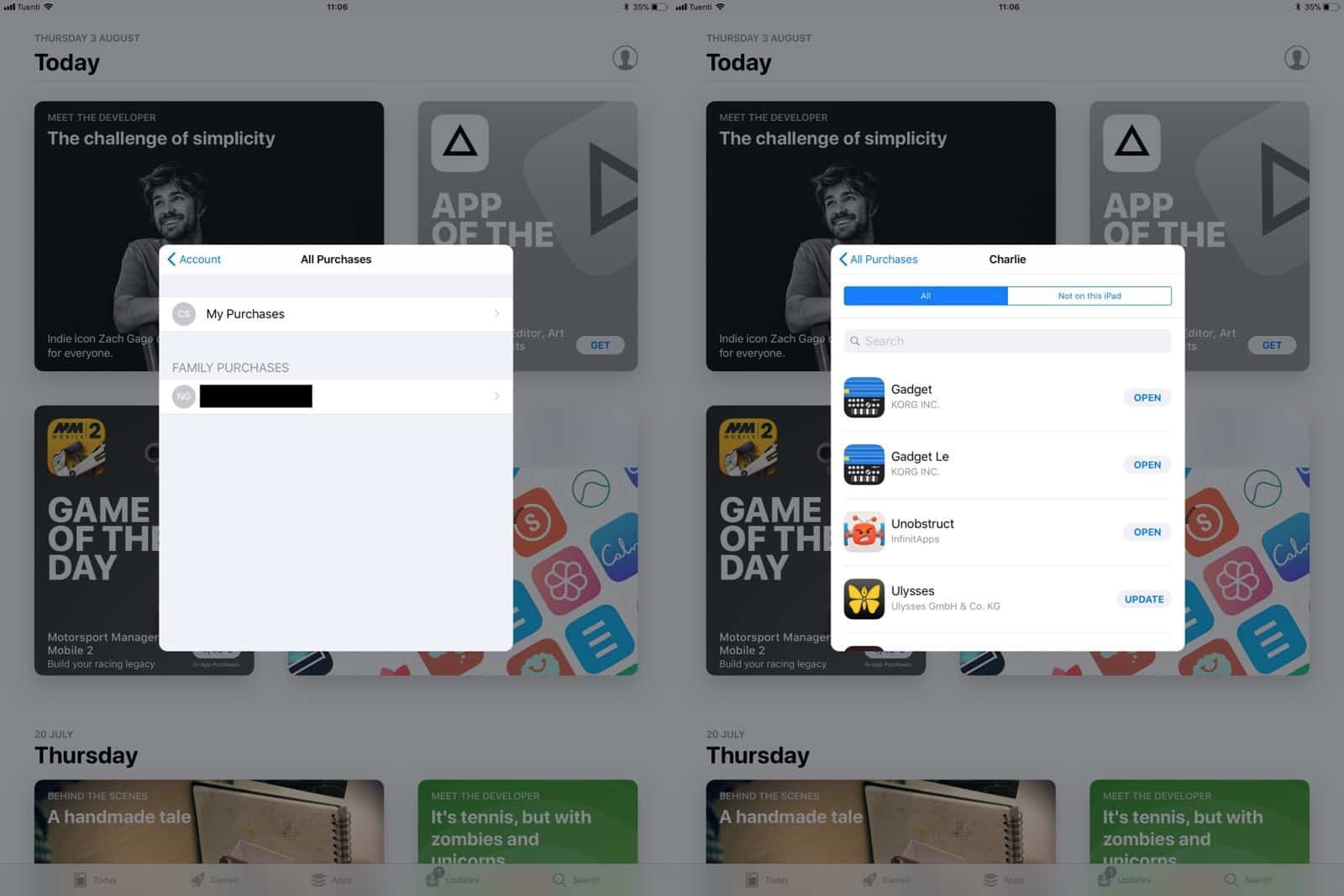 To find your previous purchases in iOS 11, open up the App Store as usual, and then tap the little User Account icon at the top right. This is available in all the App Store tabs except the search tab. When tapped, the above popover will open. Tap Purchased and you’ll be taken to the familiar screen letting you vie either your own purchases, or your Family purchases (if Family Sharing is activated).