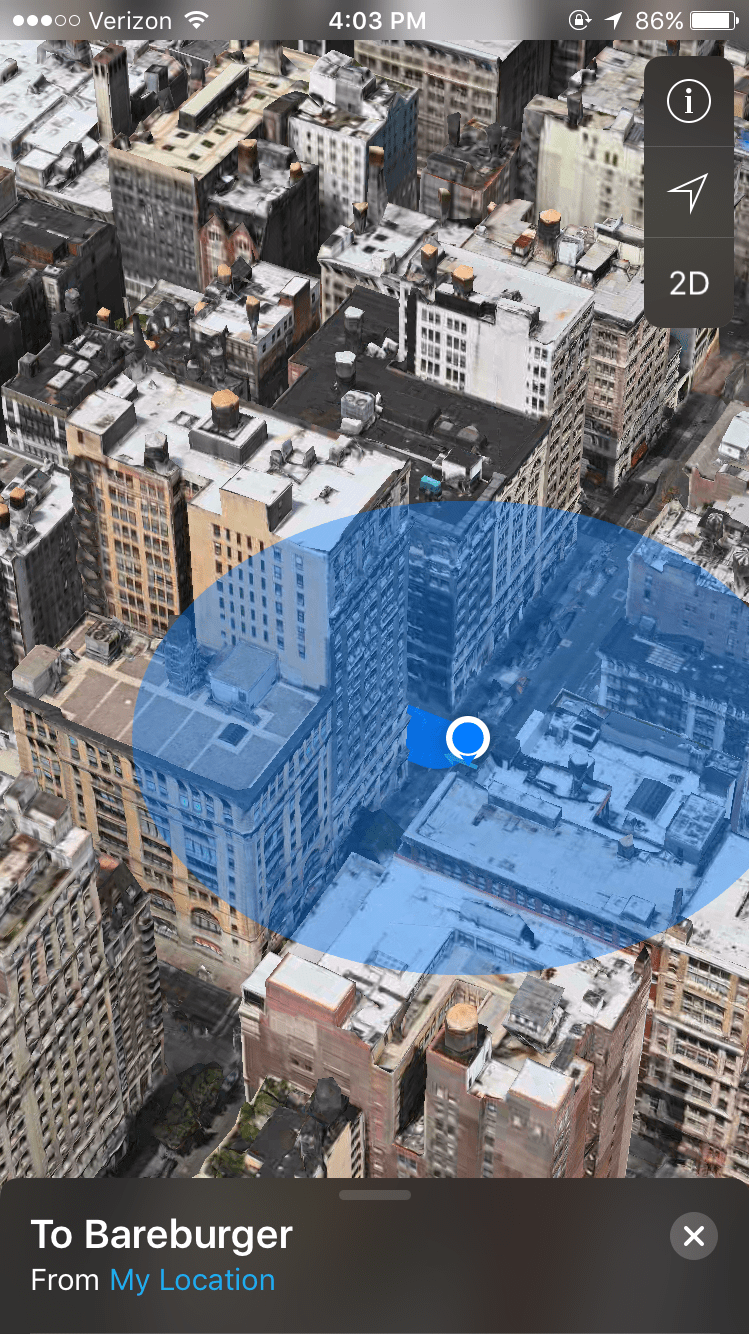 Apple Maps currently has options for a 2D and 3D view. Using 3D view gives you a general idea of the neighborhood you’re going to. Although it’s not a 3D view of the actual street, that’s probably going to be here soon. At least that’s what’s expected after seeing a horde of Apple Maps cars zipping around the world.