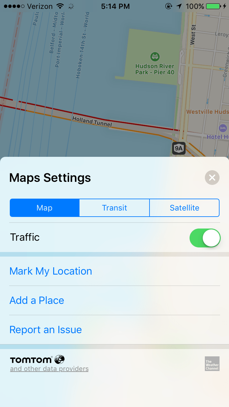 When you’re in a hurry, there’s nothing worse than hitting unexpected traffic. Apple Maps wants to give you a heads up, and even give you time to change your route. Just go to Settings > Maps and tap the slide for traffic.