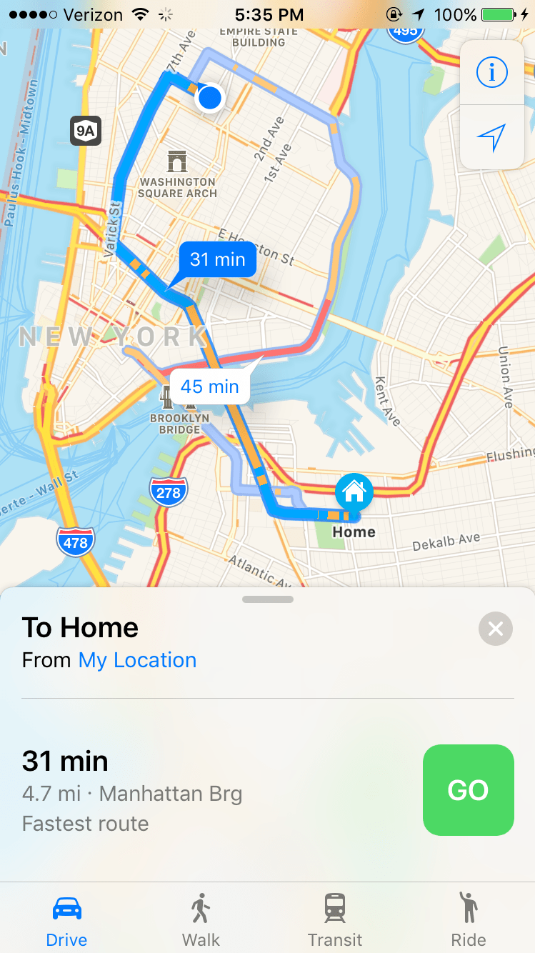 A nifty trick to make things go a little faster is adding your home location to Apple Maps. To do this, you’ll need to update your home address in your iPhone’s contacts card for yourself. After that’s done, “To Home” will always appear when you open up the app before you search for a location. This way, you don’t have to waste your time constantly typing in your home address.