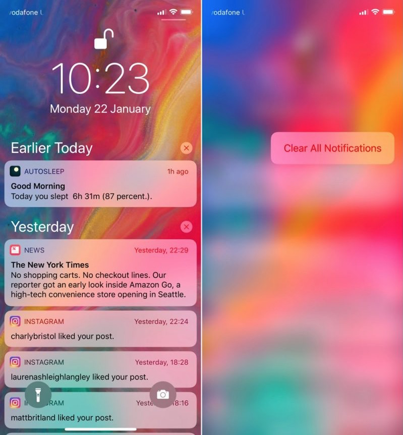 If you’ve got a bunch of notifications from earlier in the day or week that are clogging up your Notifications Screen, don’t waste time clearing them one by one. Simply hard press on the first x icon you see on the right of the list. From there, you only need to select the Clear All Notifications 3D Touch option to make them instantly vanish.