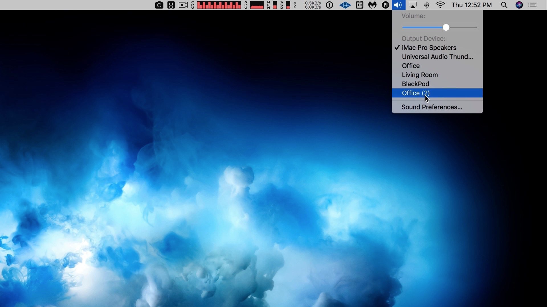 To AirPlay all sounds coming from your Mac, you should enable the Show volume in menu bar option located in System Preferences → Sound. Once you do, you’ll be able to easily select your Mac’s sound output destination, which includes the HomePod, by clicking on the Volume button in the menu bar.