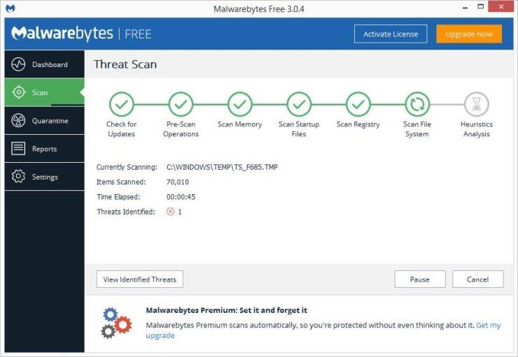 The free edition of Malwarebytes is a cleanup-only product, with no real-time malware protection. My usual malware blocking test is no use for such a product. And yet, with no real help from the independent labs, I had to do something to see the product in action. To that end, I launched the samples in batches, gave each batch time to finish installing, and then launched Malwarebytes to clean up the mess.