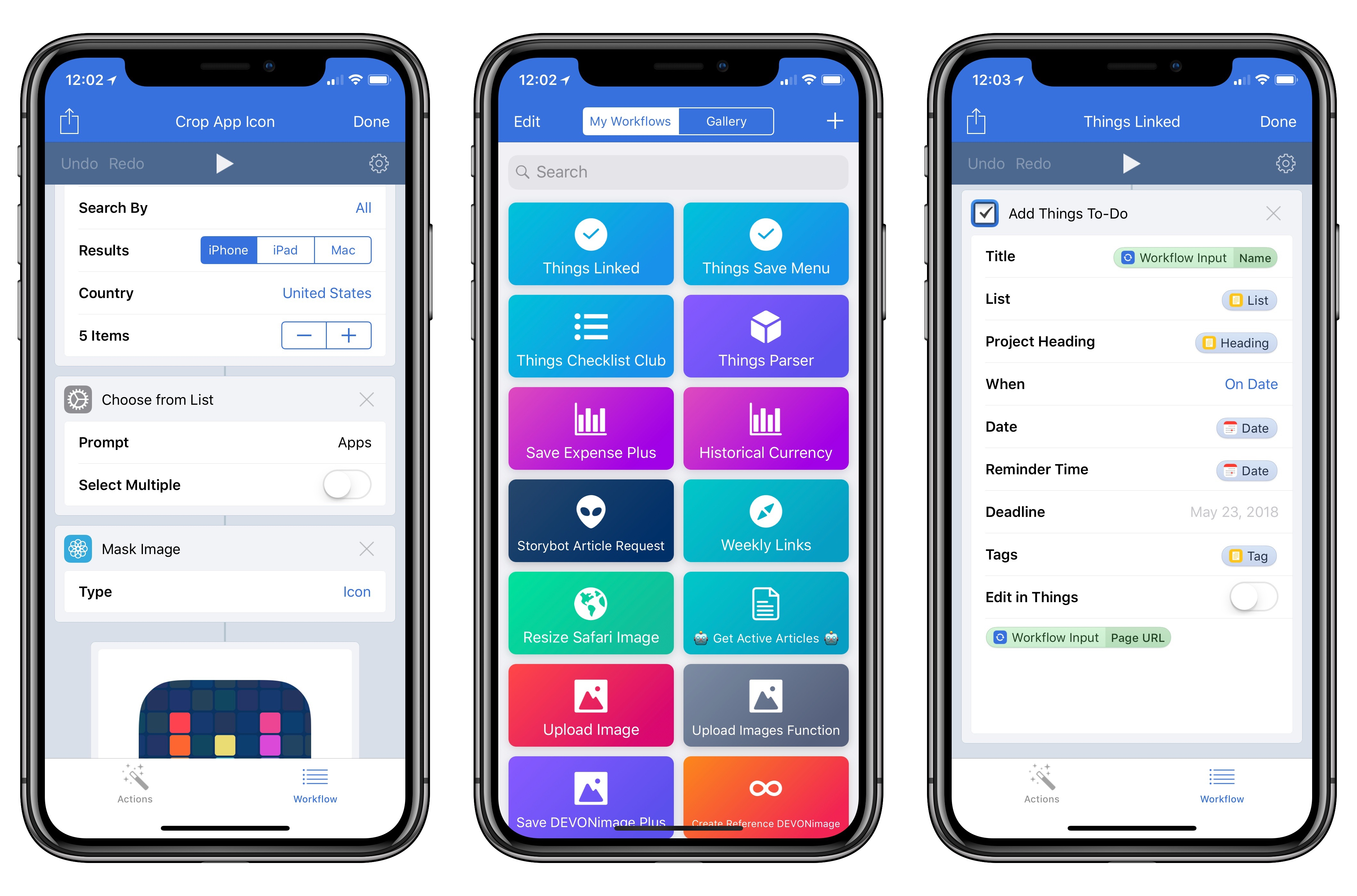 There’s a common thread between the Mask Image and Add Things To-Do actions: both obviate the need for complex workarounds – whether they involve image overlays or URL schemes – because they’re based on visual automation and magic variables. The complexity of the underlying automation is completely abstracted as the user shouldn’t have to worry about the details of what goes on under the hood. Both actions make automation more intuitive and accessible, which is exactly what Workflow always set out to achieve.