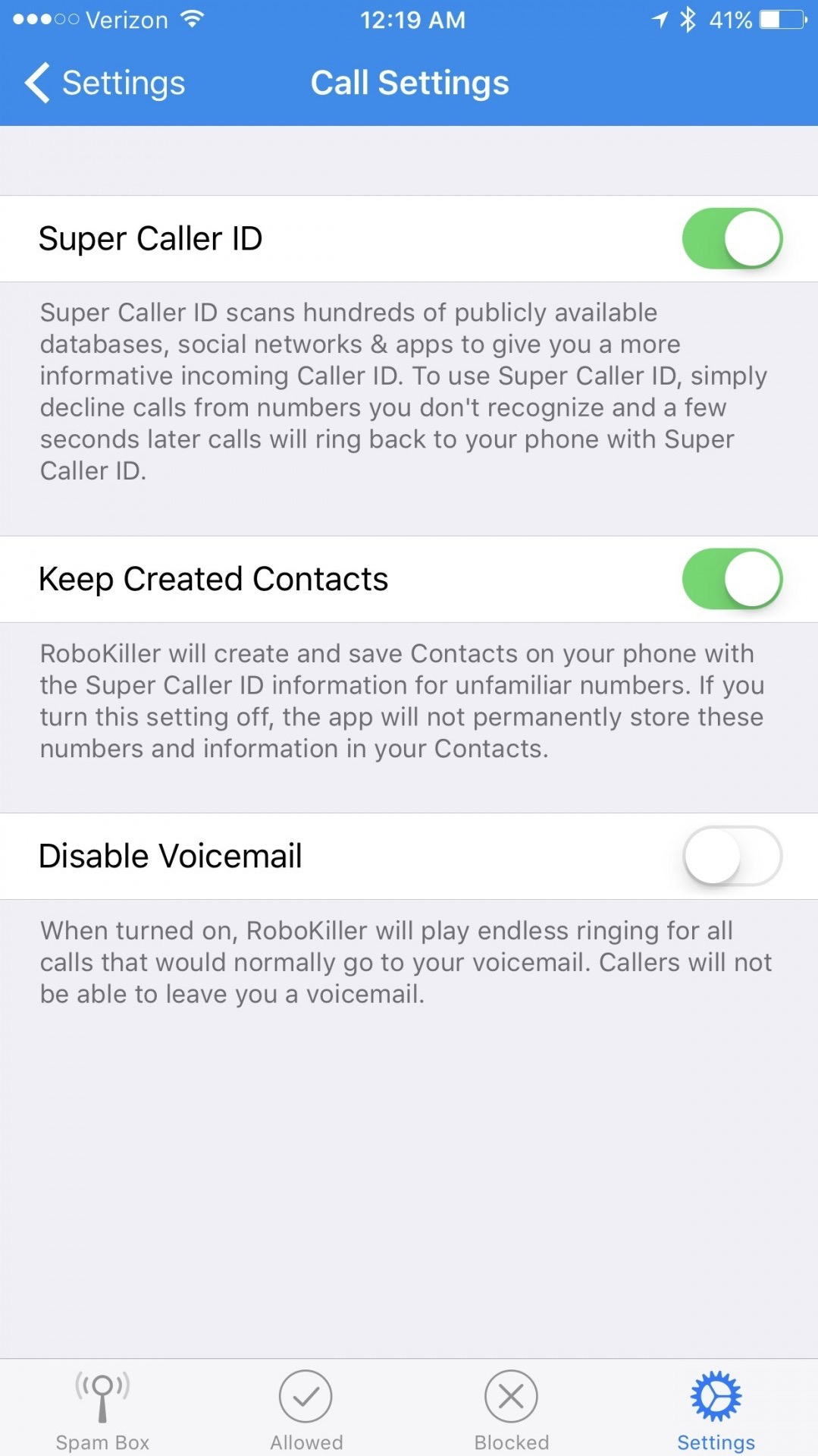 Once a user blocks a number, it is sent to the RoboKiller command center where it is then analyzed. At that point, a determination is made about where or not to share it with the shared spam list for all users. RoboKiller’s commands center analyzes the Caller ID of hundreds of thousands of anonymous calls per day and it’s able to detect spammers faster than any other company. The spam list Is updated twice an hour to make sure that users are constantly protected. Users have the ability to view missed and blocked calls in the Spam Box and you can even listen to the calls. Even though RoboKiller is pretty much an automated service, you have the ability to control the blocked calls. You can always whitelist a number or if a spam call does get through, you have the power to blacklist it manually.