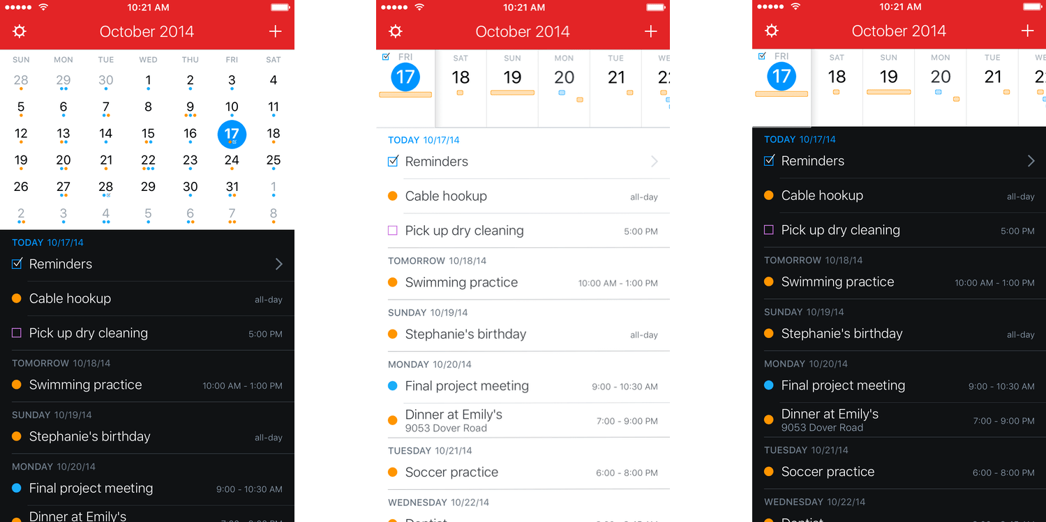 Fantastical has a lot of things going for it. It’s extremely fast to add new events using its natural language input (dinner with mom Saturday at 7:00 pm will add it). You can add in your iOS reminders, use Google Maps as your default map app (when you tap on an address), and it has a beautiful design. Fantastical also has an excellent Today widget for getting quick access to your calendar.