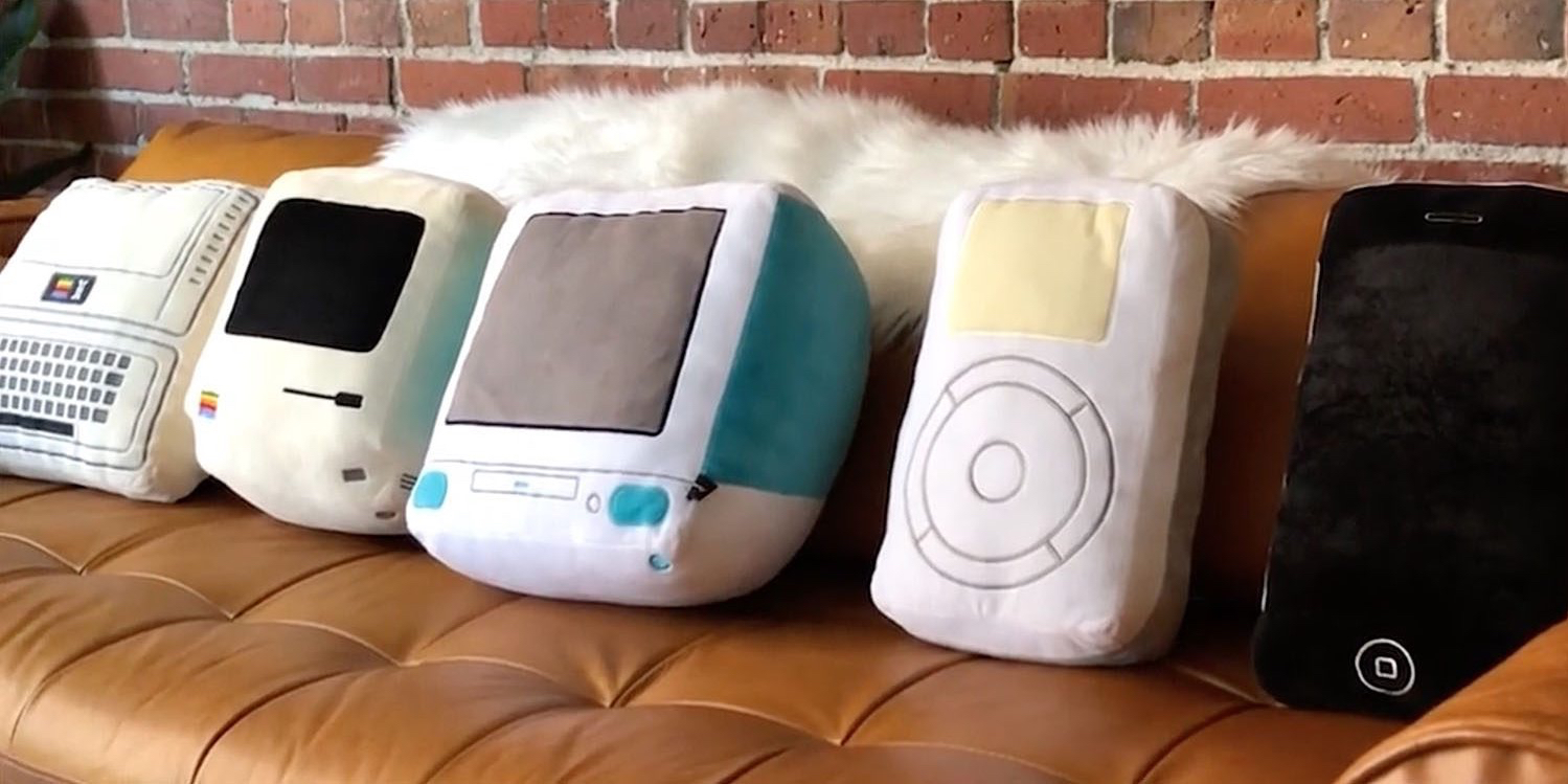 The Iconic Pillow Collection is a set of throw pillows mimicking the designs of five key Apple products through the years: